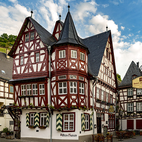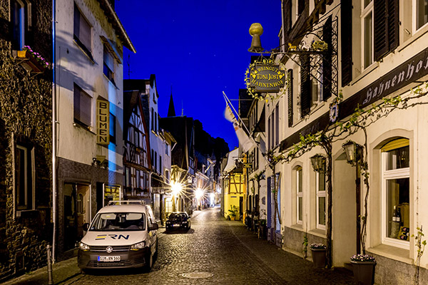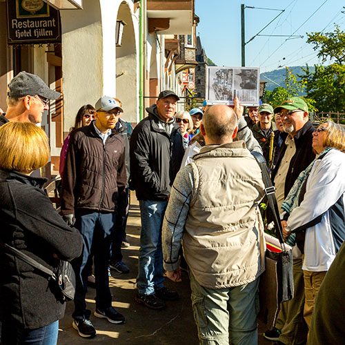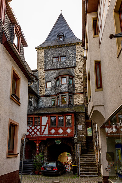Our group crossed into Germany with no passport stamps and no fuss. We made it to Bacharach, a half-timbered village on the Rhine River where I learned I can’t drink too much water on the bus. Our tour group stayed at the historic Hotel Kranenturm with its castle-like ambience. The hotel was part of the medieval town wall, but it was 15 feet from the train tracks.