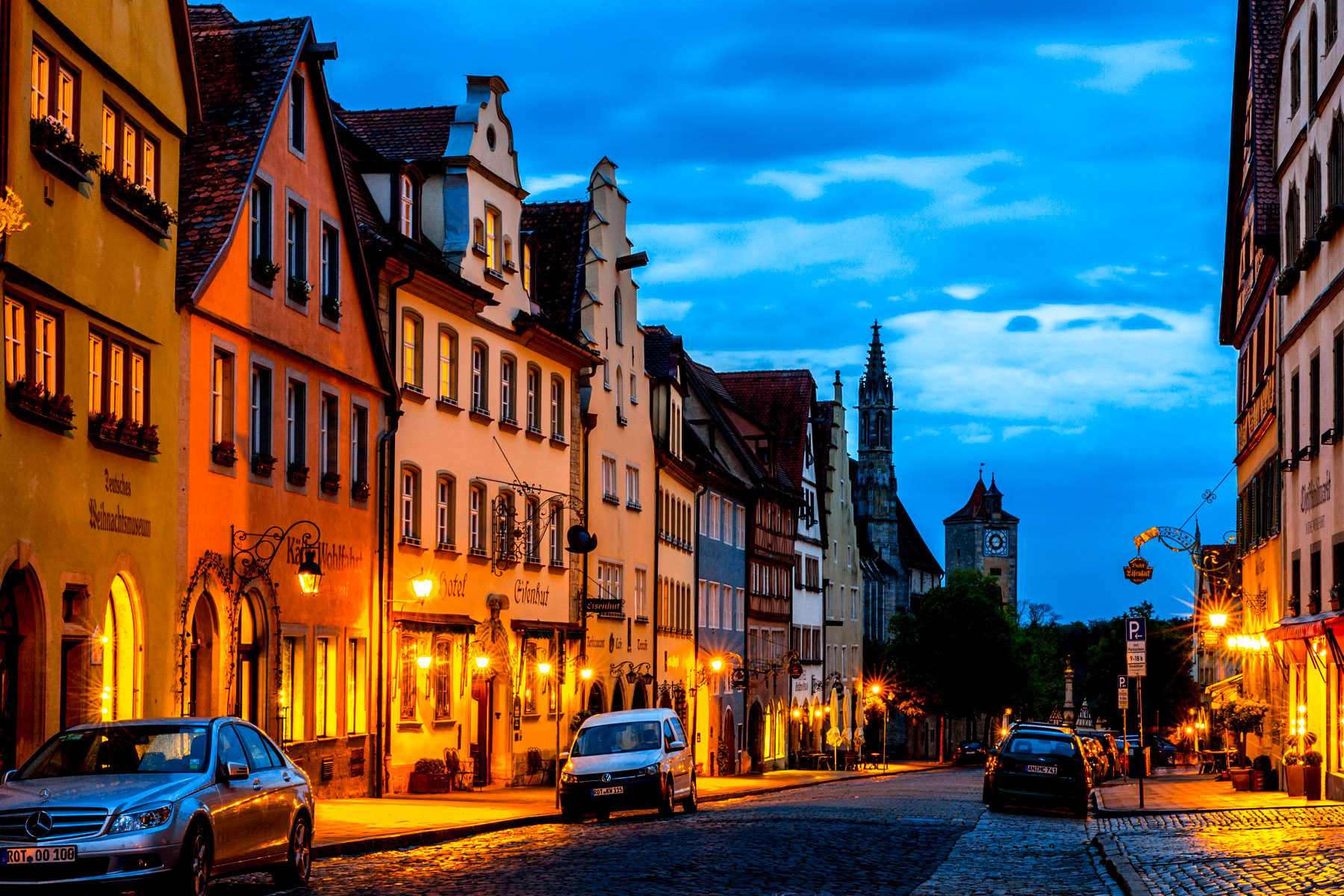 “Die blaue Stunde”, was magical in Rothenburg. The combination of stormy, cerulean blue sky mixed with the twinkling street lamps was picture perfect. Dad was kind enough to go around with me and my tripod, taking long exposures in the cold and rain.