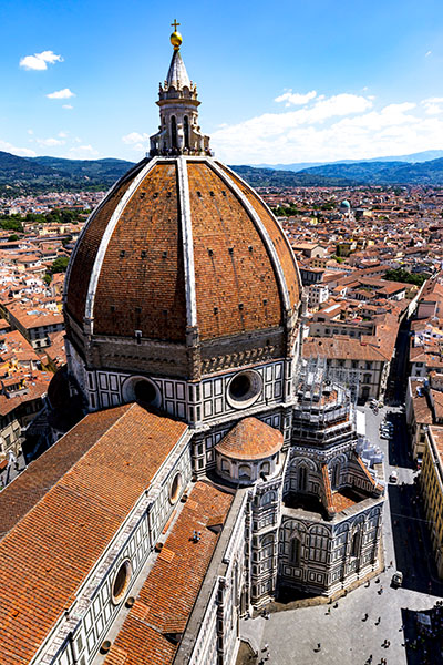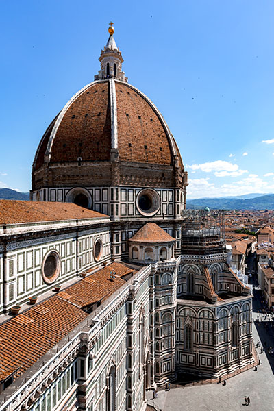 I wanted to climb the bell tower next to the Duomo. My Dad was not hot on the idea. Dad hung out in the baptistery for a bit while I went up the champanile. I could not believe how small the staircase was to get up the tower. It was a tight squeeze for two people across. There were four levels where you could get out and take in the view. It was well worth the effort as it was a beautiful day.