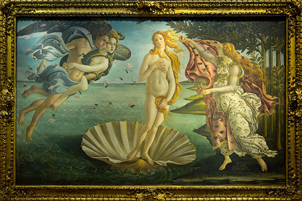 I met dad and hour later, and we went for pizza. The pizza in Venice was better than the place we picked. However, the strawberry dessert was pretty amazing. We hit the San Lorenzo market to pickup souvenirs, but quickly it was time for the Uffizi tour. We met the group and walked to the museum. We saw the speakers square (the Loggia). We met our local guide, Cindy, in the museum. We saw lots of Renaissance master works, including the magnificent Botticellis. What a treat to see many of the works I studied at Millikin University in my Art History class. The museum was warm and the tour seemed to go on and on.