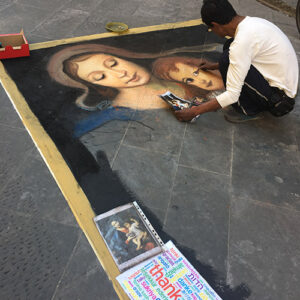 He has a special permit to make these drawings. According to law, they have to be washed away every evening.