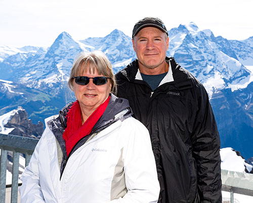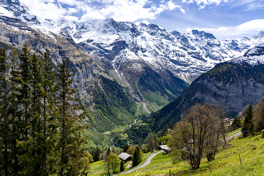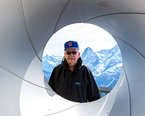 I cannot say enough about how beautiful the scenery is here. It’s a valley of 40 waterfalls with mountains on each side. It reminds me of the photos of Yosemite Valley in California. We arrived in Stechelberg, the last village at the end of the valley. We checked into our chalet with the bathroom down the hall. That night we had a wonderful swiss meal with Fondue. They made the best mashed potatoes ever. An alphorn player came and played several songs.