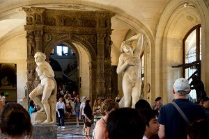 I thought there would be a guided portion in the Lourve, but we were able to see the things that interested us most. Dick joined us as we went on our way, and I got to play tour guide, telling what I remembered from Art History class. It was fun. Ken joined us after seeing the Mona Lisa. The crowds there were insane as everyone wanted a selfie with Lisa. The four of us grabbed lunch in the cafeteria, and then we went our separate ways.