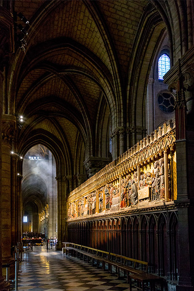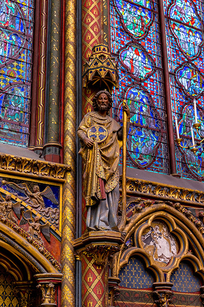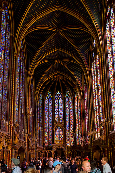 We took the Metro to the Châtelet stop and saw the Hôtel de Ville. We visited the flower market and then came to the Sainte-Chapelle (Holy Chapel). It was the royal chapel inside the Palace grounds. This gothic giant holds the most extensive collection of 13th century stained glass. All the works are bible scenes. The entire chapel was built to hold the king’s collection of passion relics, including the Crown of Thorns.