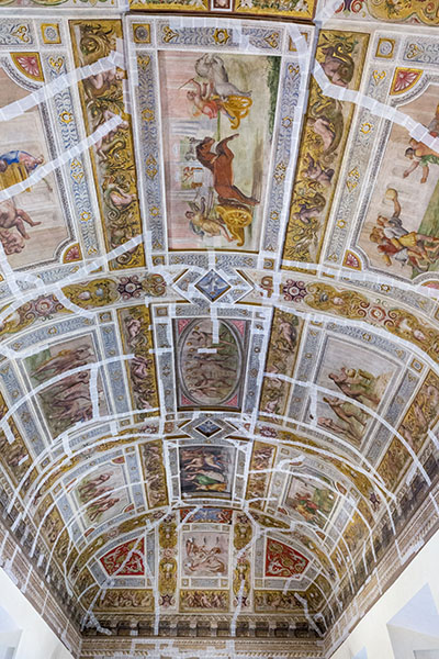 On our way to Florence, we stopped in Ferrara to see the castle and get some lunch. The castle had Frescos on the ceilings but it looked as if there was structural damage. The Frescos appeared to be taped along the cracks in the ceiling....